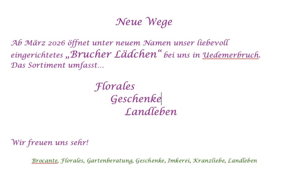 Brucher Lädchen, Jutta Bongers, Marienbaumer Str. 5, 47589 Uedem